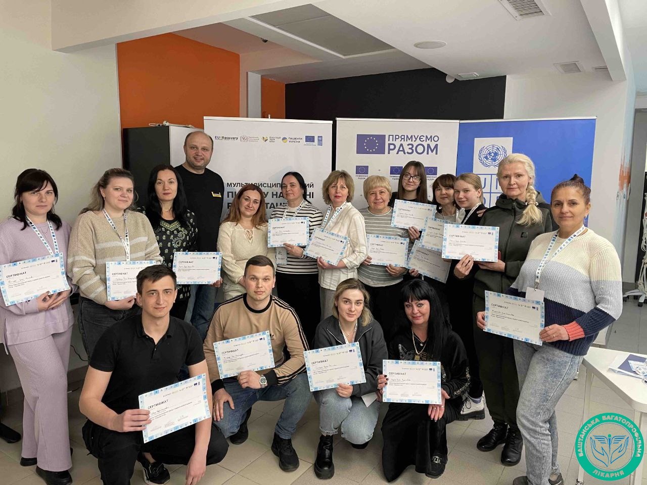 Навчання організоване за сприяння UNDP в Україні в межах проєкту «EU4Recovery — Розширення можливостей громад в Україні» (EU4Recovery) за фінансової підтримки Європейського Союзу.Дякуємо Благодійному фонду «Пацієнти України», проєкту «Реабілітація травм війни» та Українському католицькому університету за експертну підтримку.